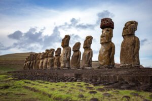- Ahu Tongariki: La imagen más reconocida de la isla con 15 moáis alineados frente al océano.